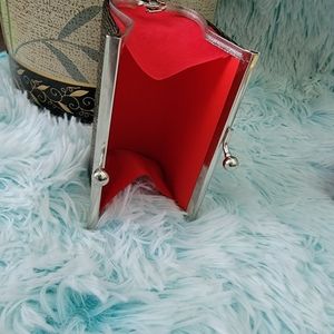 Bronze tone small coin or lipstick clutch will compliment your evening with any attire you wish to wear. Red satin lining, silver trim and pleated exterior will sure to grasp the eyes of others. See pics for details, pls see pics for details and Thank you for visiting Queen Emporium