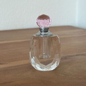 Small glass perfume bottle. I believe this is vintage since it was at my grandmother‘s house. She never used it for perfume. Only decoration. Approximately 3 inches tall. Very pretty!