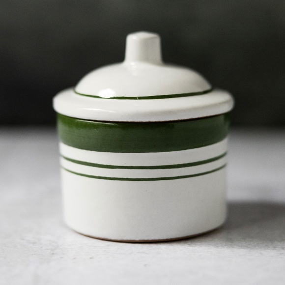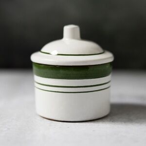 Small green white stoneware cheese crock canister with lid Pottery Craft Rondele