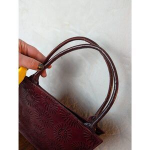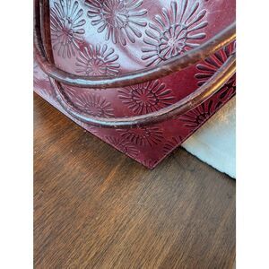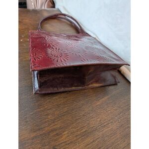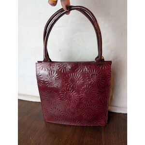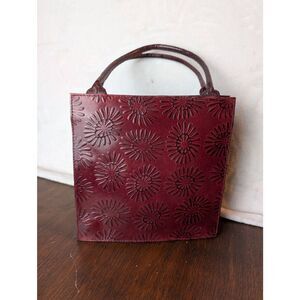 *Small maroon hand embossed leather tote. Small amounts of cracking on handles. Very minimal. See pictures. #Ccc