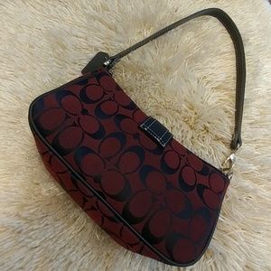Red and black handbag 👜 9" X 5" X 2" Handle is 20" including the snap. A single inside zipper pocket.