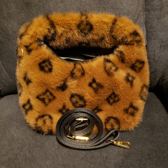 Small brown and black handbag.
