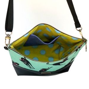 Small lightweight handcrafted handbag with zippered closure, brass hardware