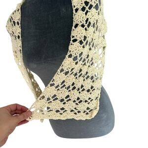 Small handmade- knit cream neck scarf- in tractor design boho western - OS