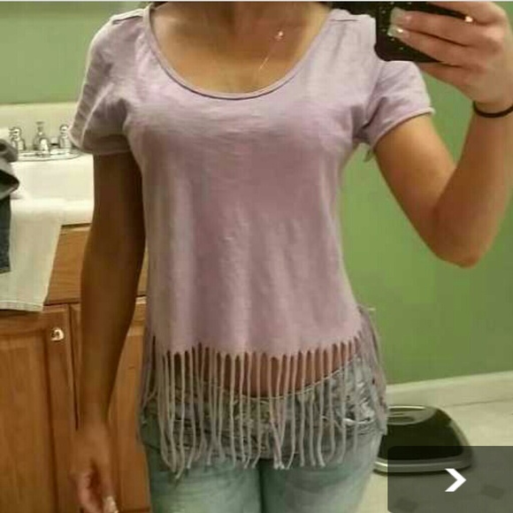 Small lilac crop top w/ strings at the bottom. Perfect for the beach over a bathing suit!