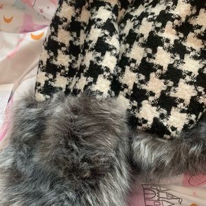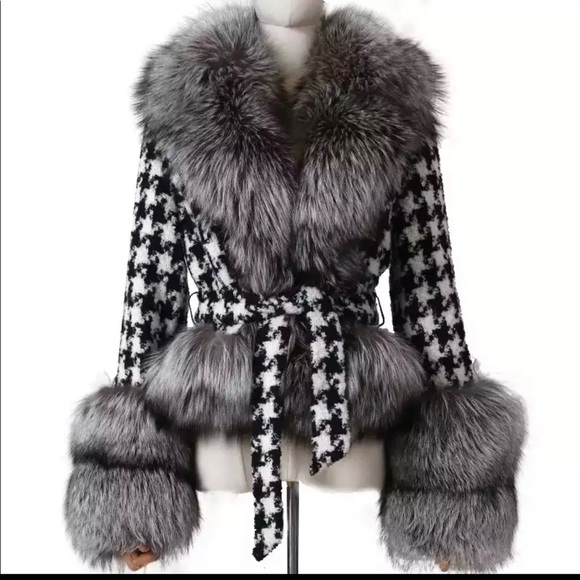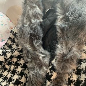 The jacket is inspired to look Like the first picture as you can see the fur isn’t as for however it is a nice size and decent amount of her on the sleeves of the jacket it is a cute jacket