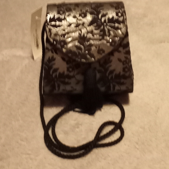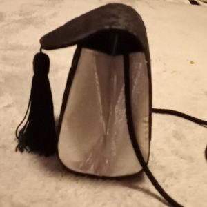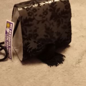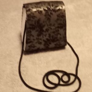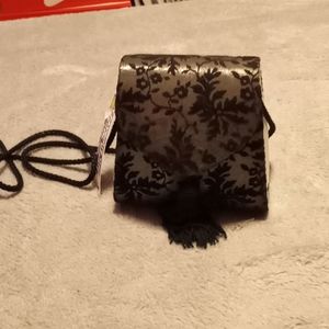 Small black and silver suede flower printed mini hand or shoulder bag.. never used
