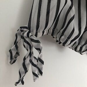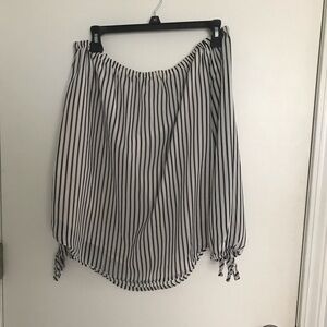 Size small black and white off the shoulder top. Top is long sleeve with little ties at the end. Top is super cute on.