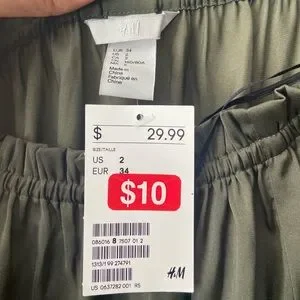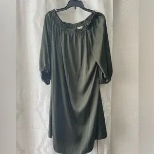 H&M size 2 olive green mini dress. It has long sleeves. Brand new. Belt to winch waist and lightweight.