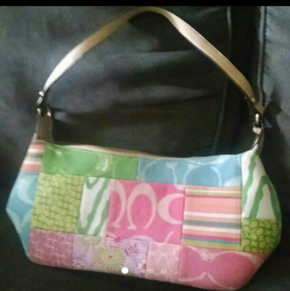 Label inside. Pocket. And a gold zipper. Pink. Suede. Handbag.