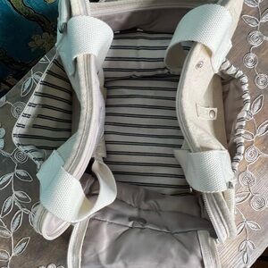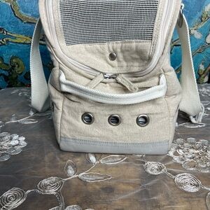 Small pet carrier by Pet Paradise. Stripped, linen with removable cushion.