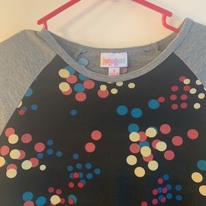 Lularoe small randy 3/4 sleeve. It’s black background with polka dots light gray sleeves. Great condition