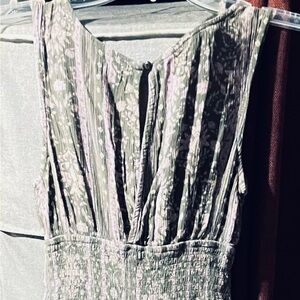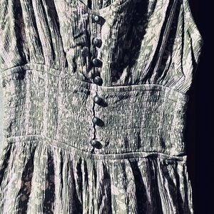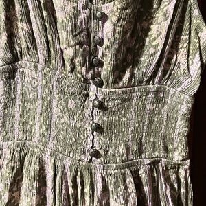 FITS XS-Small best. Pretty green, floral romper featuring flare pants, sleeveless, decorative buttons and elastic waist. No visible holes, tears or stains.