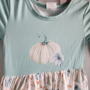 Small shop Pumpkin Fall Floral Mint Ruffle Dress Toddler Girl Size 2 Super Soft
