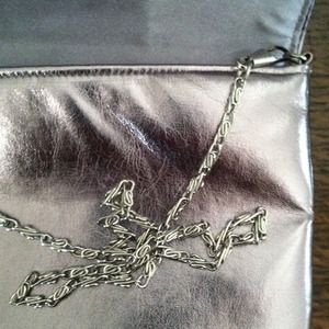 💜Cute small silver clutch has chain to turn it into a little purse. Great for a night out. I only used it for prom.💜
