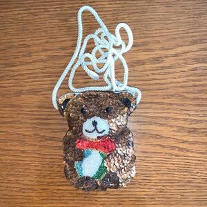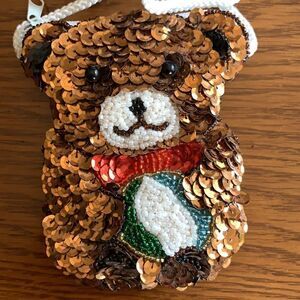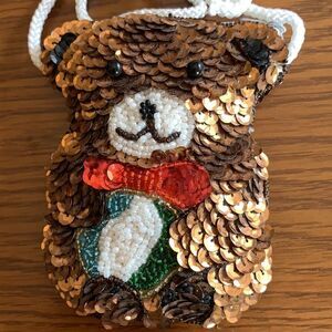 Small spangled & beaded brown Christmas bear purse or bag