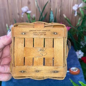 Nice small Longaberger basket that is missing one of the leather handles. No other defects noted.