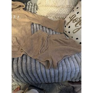 Tan/brown sharper Teddy faux fur  size small oversize, hooded pullover sweatshirt/hoodie and matching skims style lounge shorts