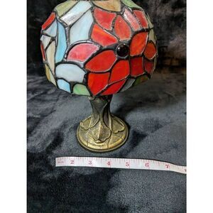 Brass base tea light W/ stained glass shade. In excellent condition size 5x8