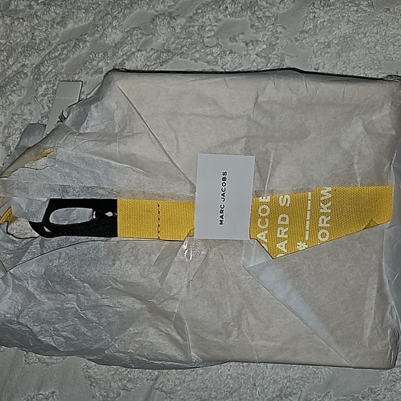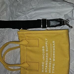 Marc Jacobs small crossbody tote bag. Sun yellow black body cross strap.