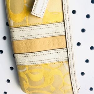 I love this clutch it good for when you are on the go and need something small to carry your items. There is a small pocket inside. It has been gently worn and taken good care of.