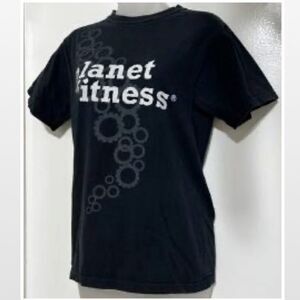 Planet Fitness Heavy Cotton small black t-shirt. Great comfort for working out, pj lounge, work from home, weekends, evenings, jogging, yoga, biking, & running! Features white Planet Fitness logo spell out, grey wheels, crew neck, & soft cotton stretchy fabric. Approx. arm pit to arm pit 16.5”, arm 7”, 25”T. Multiples available. Some fade. Same or Next Day Shipping 🎁 Make an Offer to Save 😊💕 All sales final & sold as is