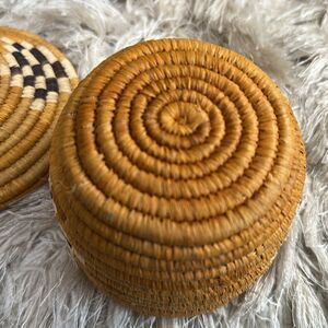 Small Boho Natural Woven Basket With Lid For Home Decor