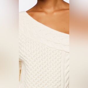 Small Forever 21 Cream One-Shoulder Cable Knit Sweater NWOT