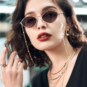 Small Frame Retro Sunnies with Chain Brown Lens