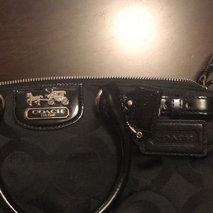 Small/Medium in size. Great condition- very little wear. Black exterior with red satin lining. Missing crossbody strap.