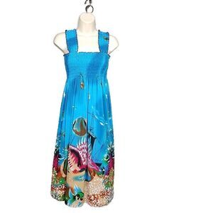 Small/Medium Blue Pull On Midi Dress Hawaii Beach Sleeveless Vacation Dress S