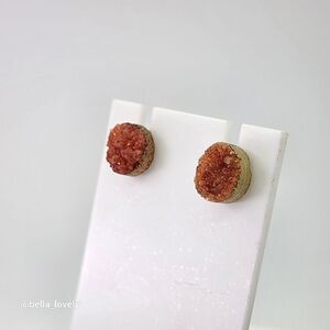 Small Orange Red Crystal Agate Druzy Quartz Geode Round Stud Earrings 0.4"