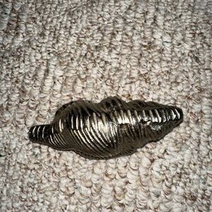 This decorative display features a small silver metal conch shell, perfect for adding a touch of beachy charm to your home decor. The metal material gives it a sleek and modern look, while the silver color complements a variety of styles. Ideal for adding a subtle coastal theme to your living space, this unique piece is sure to catch the eye and bring a touch of the beach indoors.