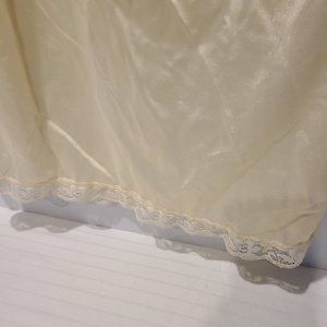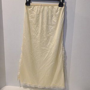 Small-Vintage Mel lin half slip Skirt-Double Slit Lace-Ivory/Champagne-Pull on