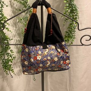 Small oriental cloth handbag. Black bottom and top with floral body. NWOT & Smoke free and pet free home