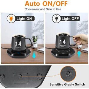 🧿Coffee Mug Warmer Auto Shut ON/Off: The Coffee cup Warmer for Desk built-in gravity induction switch, no need to turn it on/off manually. Put the mug on heat zone, the coffee cup warmer plate will auto work, and remove the coffee mug it will turn off.