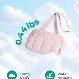 Features: Lightweight and water-repellent nylon waist pack with a large capacity of 2.2L. Measures about 9.2" x 5.9" x 2.3". It has a sleek, puffy design that's comfy to wear all day, plus multiple pockets including a front zipper, inner compartment, mesh pockets, and a hidden back zipper for all your essentials.