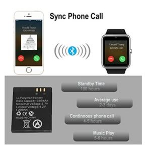 Smart Watch Functions for ANDROID smartphones: Dial via watch GSM SIM or Bluetooth optional, Music play, Sedentary Reminder, Anti-lost(looking phone & looking smartwatch), Sleep Monitor, Pedometer, Voice Record, Bluetooth Watch Local&Remote Capture, Alarm, Calculator, Contact,Call history, Calendar. Facebook, Twitter, Whatsapp, Messages (have APP for Android and will get notifications in Smartwatch to read all messages from email and social media)