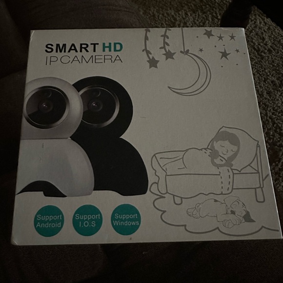 Smart HD IP Camera with dual lenses. Compatible with Android, iOS, and Windows.