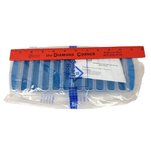 11.5" long - 4.5" wide. Blue and clear. Made by Smart Home.