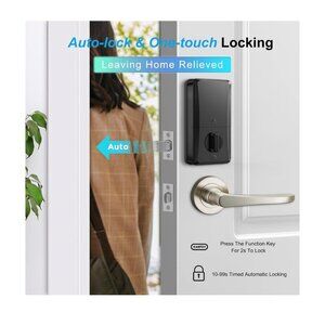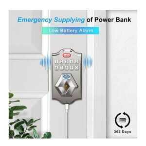 This smart lock integrates advanced security features for residential and commercial use. It supports multiple unlocking methods, including keypad, fingerprint, and traditional key access. With auto-lock and emergency power supply options, it ensures safety and convenience. Durable construction suits various environments, offering reliable performance and peace of mind. • Supports up to 50 passwords & fingerprints • Includes 2 spare keys • Auto-lock feature with 10-99s timer • Low battery alarm • Emergency power supply via power bank