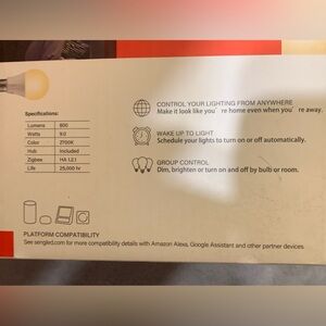 Sengled smart LED light. 2 pack soft white kit with hub included. Works with Alexa and google assistant. New. Box has never been opened.