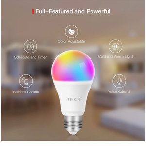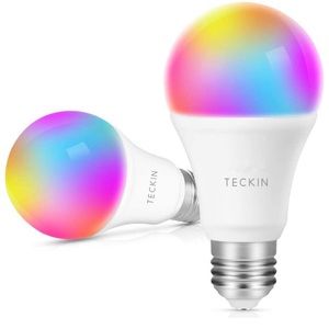 Smart Light Bulb with Soft White Light 2800k-6200k + RGBW, TECKIN A19 E26 WiFi Multicolor LED Bulb Compatible with Phone, Google Home, 7.5w (60w Equivalent),2 Pack