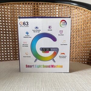 Smart Light Sound Machine featuring a vibrant RGB display. Includes alarm clock and sound machine functions.
