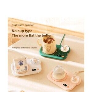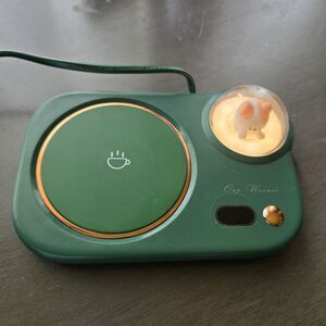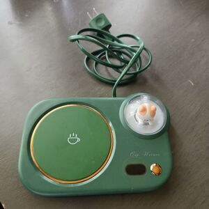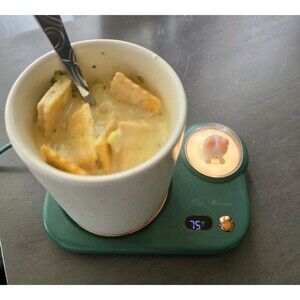 The Smart Mug Warmer with Cute Cat Night Light is a stylish and functional addition to any home. With a green color and a wattage of 25 watts, this mug warmer features a cute cat design and a LED light for added ambiance. It has three temperature settings and automatically shuts off to save energy. Suitable for any flat bottom cup, this 12 fluid ounce capacity warmer is easy to use and efficient, making it a must-have for coffee or tea lovers.
