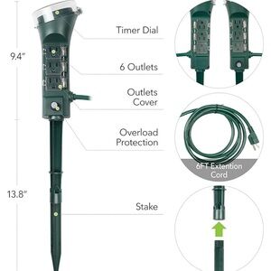 【Versatile & Safe Outdoor Power Solution】Our yard stake timer, doubling as an outdoor outlet timer, features 6 grounded outlets with a 6ft cord, allowing simultaneous power for multiple devices. Equipped with IP44 waterproofing and built-in overload protection, this outdoor power stake timer ensures safe and extensive coverage for all your outdoor electrical needs.