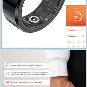 Fitness Tracker Smart Ring, Step Counter for Walking, Heart Rate Blood Oxygen Calorie Sleep Tracker Health Ring, IP68 Waterproof Design, Stainless Steel, 5-7 Days Battery Life. US size 9. Works with the YouPro app. Great condition. Includes charger!