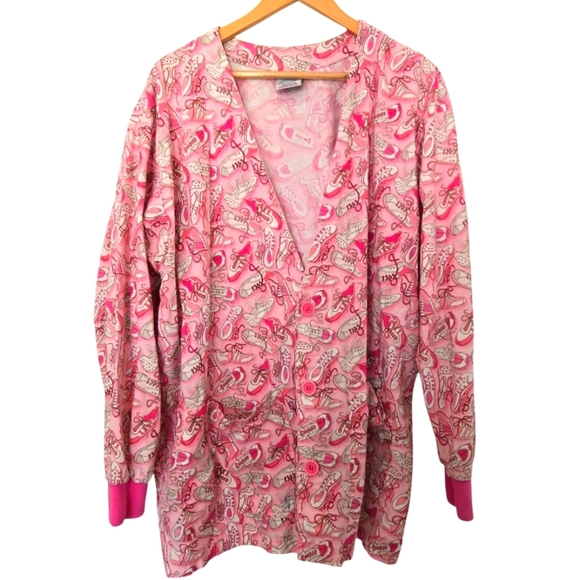 Smart Scrubs Pink Patterned Button-Up Cardigan Size XL