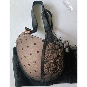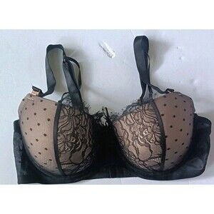 Smart & Sexy Push Up Bra 38DD Black Underwire Balconette Floral Polka Dot Lace