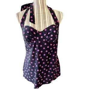 Smart & Sexy Swim, retro tankini top, size 36C, full bra, halter tie, EUC